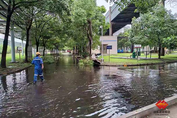 图为江苏常州公司抢险队员对积水地段紧急排涝