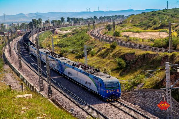 图为运煤专列蜿蜒行驶在美丽的包神线上