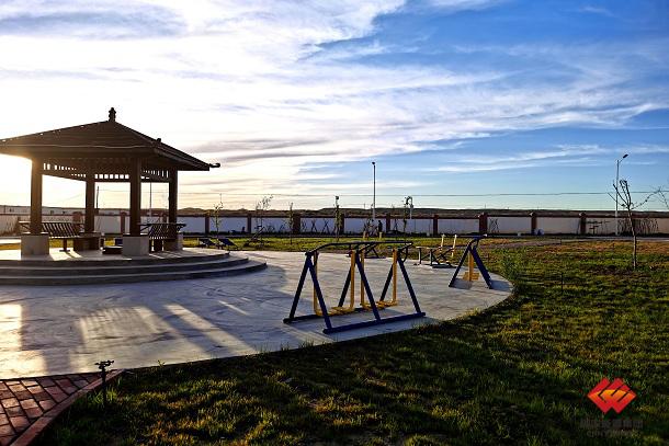 图为和丰电厂为带家公寓活动小广场安装健身器材
