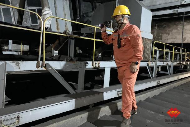 图为寿光公司输煤人员巡视输煤皮带运输情况