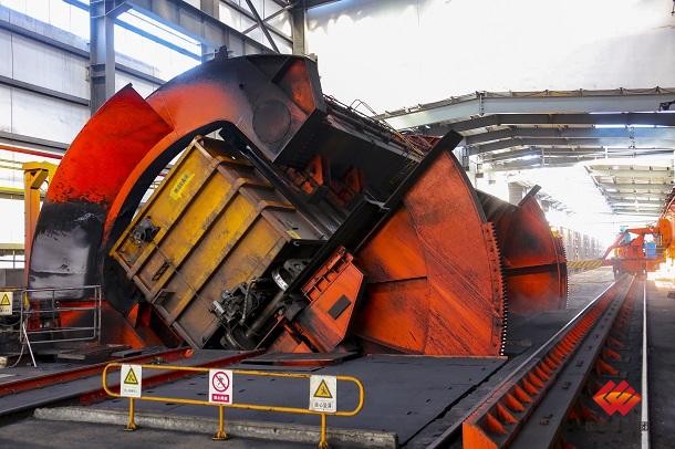 图为秦皇岛公司翻车机正在接卸来煤
