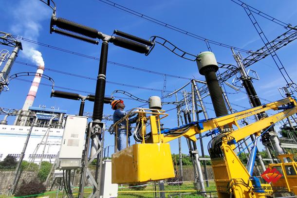 图为华蓥山公司检修人员对升压站设备加强巡查