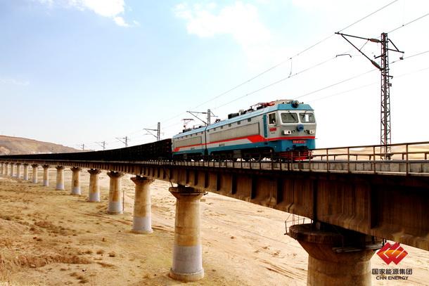 图为运煤专列驶过包神线响沙湾大桥