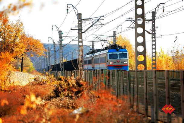 图为能源保供运煤专列驶过满眼秋色的神朔线