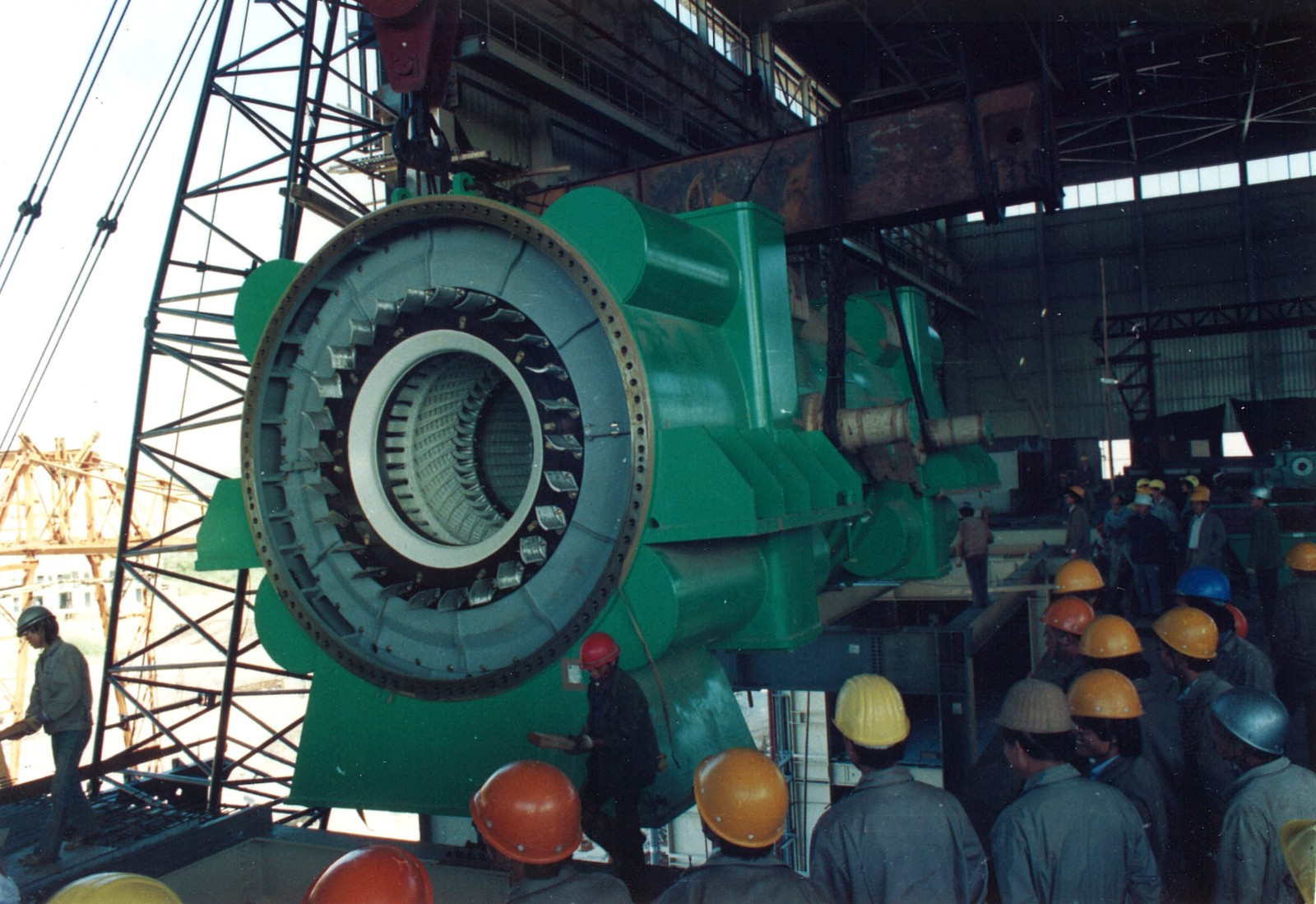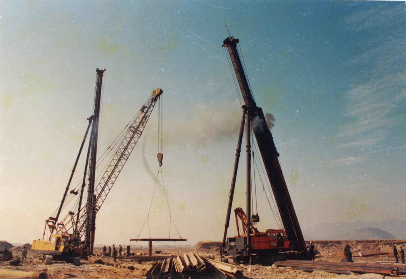 图为1990年世界银行副行长阿蒂拉·卡劳斯曼诺古考察北仑电厂建设工地