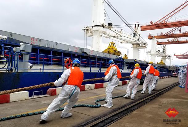 图为广东公司燃料人员落实疫情防控措施做好外来煤船接卸