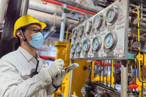图为江苏公司陈家港电厂运行人员正在巡检记录设备参数