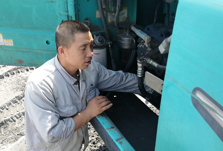 从原先的30来人,到现在的14人,灰场职工人数越来越少,工作的任务和压力却越来越大了。作为班长,或老朋友、老兄弟,苏大勇已经不记得多久没有发布过“工作命令”了,他们都形成了一种默契,一种习惯。苏大勇一个手势,身边的职工迅速补位,挖掘机装载、铲车修路、翻斗运沙石,保证装灰道路的通行能力。为避免扬尘,他总是保持着恰到好处的速度,放臂、收斗、取灰、起斗、抬臂、旋转、放斗,轻轻将灰倒入车中。