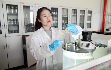 裴琴琴在化验设备油质粘度