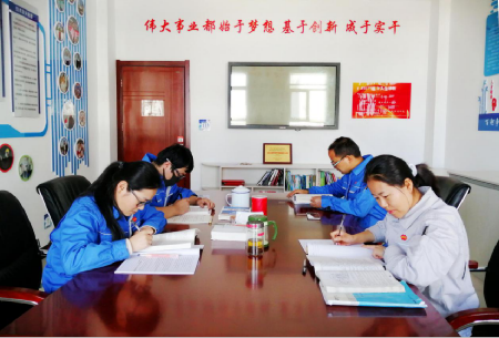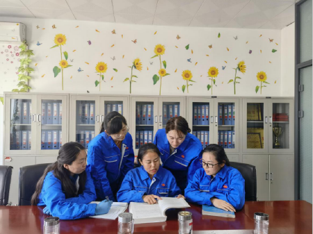 裴琴琴带领班组成员学习操作规程