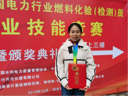120天里,她从未间断过练习,天蒙蒙亮就起来背标准,凌晨以后,还在制样间忙碌。寂静的夜里,豆大的汗珠滴落在钢板上,她知道这是拼搏的汗水。4个月后,在集团大赛中,她以采样实操排名第二,制样实操用时最短,一举拿下了实操第一的优异成绩,荣获采制化全能专业三等奖。3个月后,她再获“全国电力行业技术能手”荣誉称号,她所在的团队获得全国电力行业燃料化验(检测)员职业技能大赛采制化团体二等奖、化验团体二等奖、采制团体三等奖。在制样实操比拼中,裴琴琴首破比赛人数过半、无一人在规定的时间内完成比赛的局面,以提前4分钟高标准完成所有操作的强悍实力,赢得了评委及其他选手的一致好评。而在这项比赛中,大多数选手因超时被强制退场。