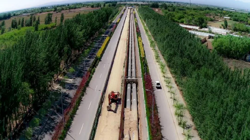 银川“东热西送”集中供热项目规划两期建设,以宁夏灵武发电有限公司332万千瓦空冷机组为热源,采用长距离跨黄河、大温差热泵集中供热技术,一期工程于2017年9月开工建设,热网工程投资34.89亿元。管网主干线总长达109公里,其中城外主管线46公里,市区“两横三纵”主管线24公里,项目共穿越重要铁路、水利、交通枢纽等53处,这其中就包括穿越黄河。面对这么大的工程,而当时的宁夏供热公司却只有不到100人。