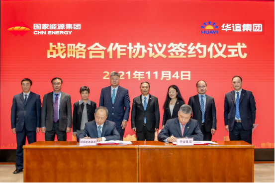 11月4日,国家能源集团与华谊集团在上海签署战略合作协议。国家能源集团党组副书记、总经理刘国跃,华谊集团党委书记、董事长刘训峰,总裁王霞,上海市经信委副主任刘平,上海市国资委二级巡视员邵珉出席签约仪式。国家能源集团党组成员、副总经理王树民与华谊集团副总裁陈耀分别代表双方签订战略合作协议。