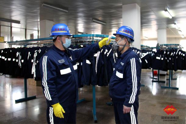 图为该矿人员为到岗职工进行体温检测