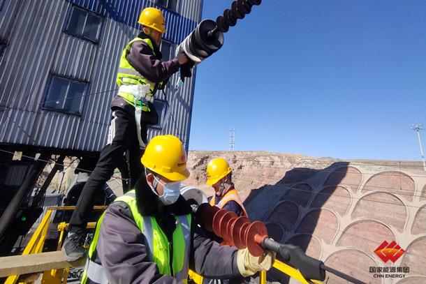 2月18日,国家能源集团包神铁路包神公司供电专业在春节后第一个天窗点组织清扫重污区绝缘子。