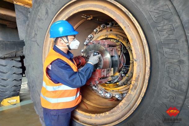 图为机修钳工在检查卡车电动轮转子