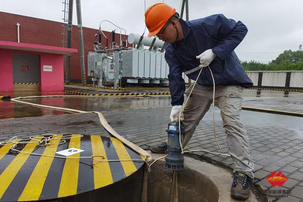 图为员工正在进行事故油池排水工作