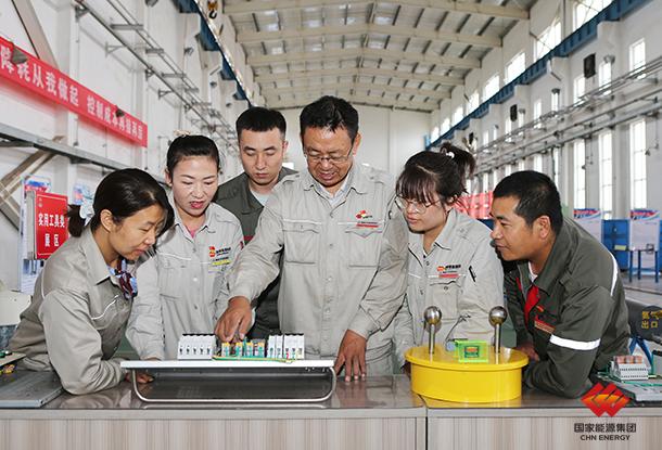 图为电气车间技术人员为员工讲解变频器控制回路原理