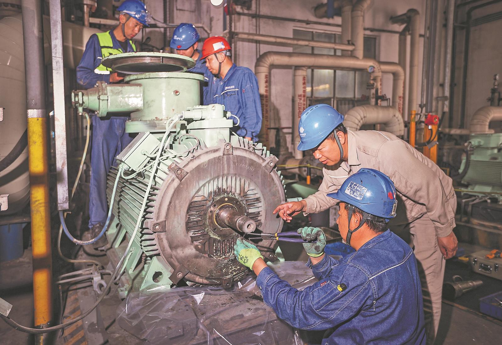 图为煤制油电气管理中心检修人员对250千瓦电动机开展定期检查