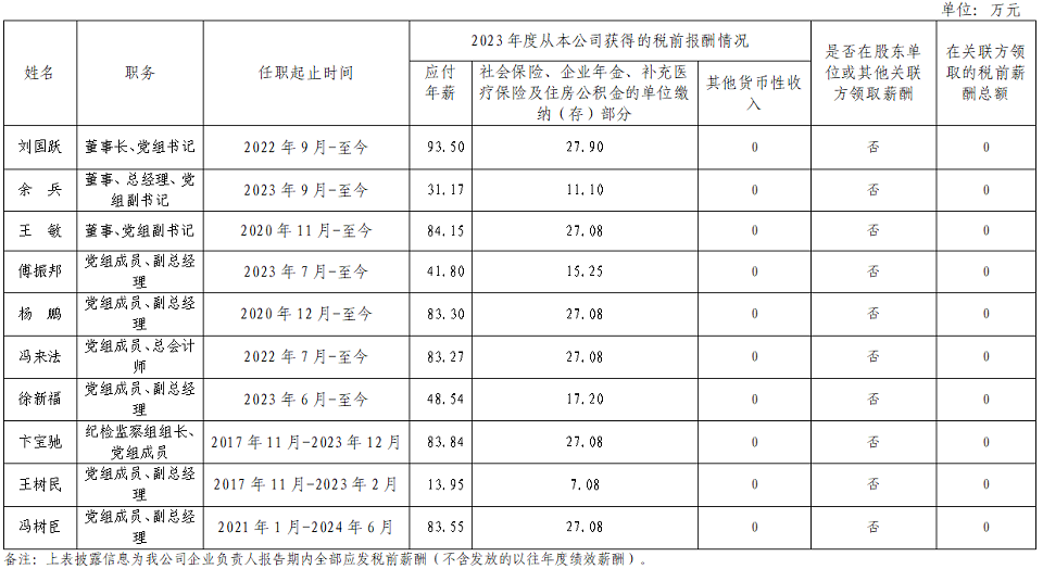 国家能源投资集团有限责任公司企业负责人2023年度薪酬情况