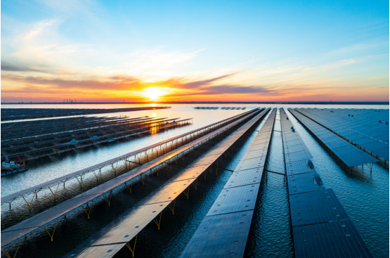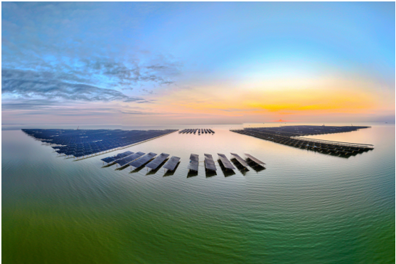 At the project site in Kenli district, Dongying city, each offshore PV platform measures 60 meters in length and 35 meters in width, covering an area equivalent to five standard basketball courts. A total of 2,934 PV platforms have been installed across the project and arranged in orderly rows on the sea surface, creating a spectacular sight.
